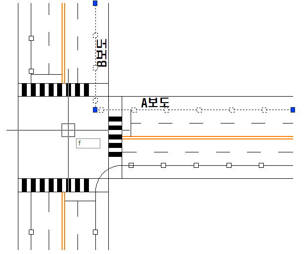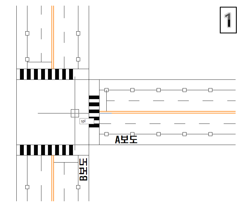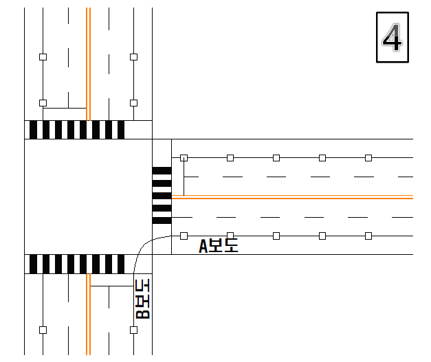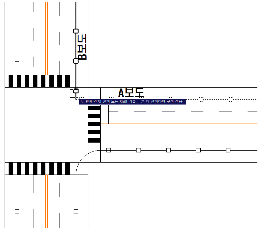 ▷예시로 저는 A보도와 B보도를 연결하는 곡선을 한번 그려보겠습니다.